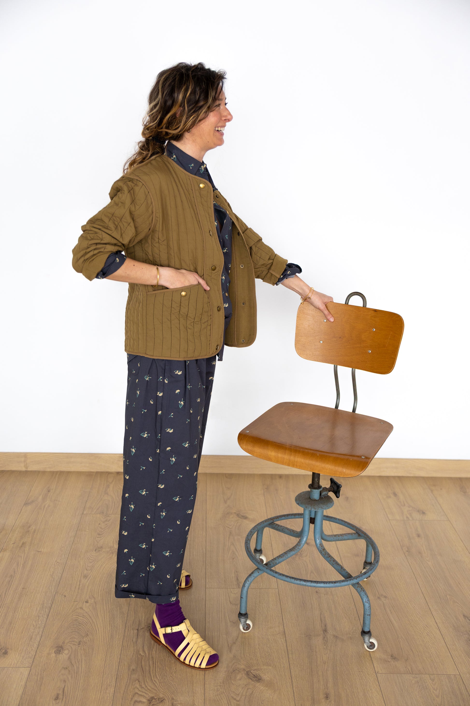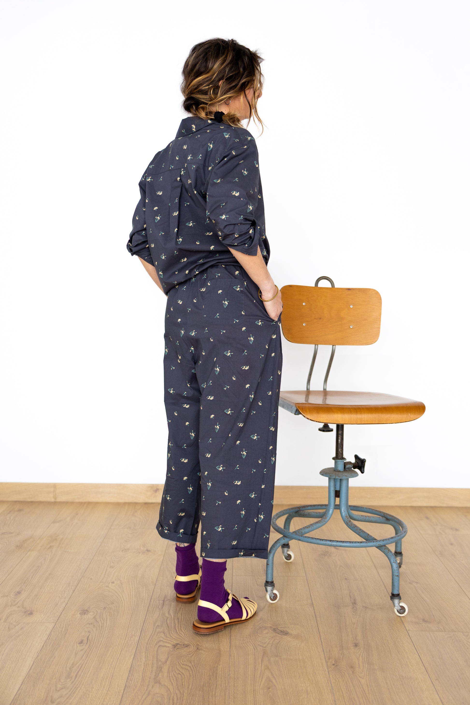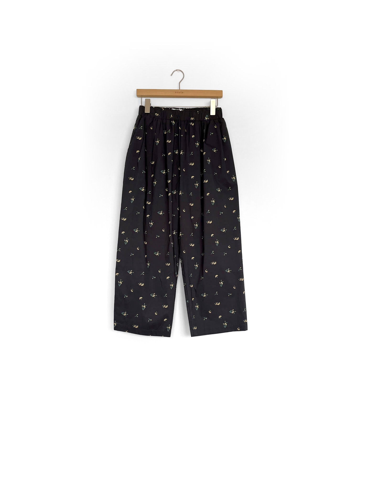 Pantalón cropped, con cinturilla de goma, ligeramente abombachado.
